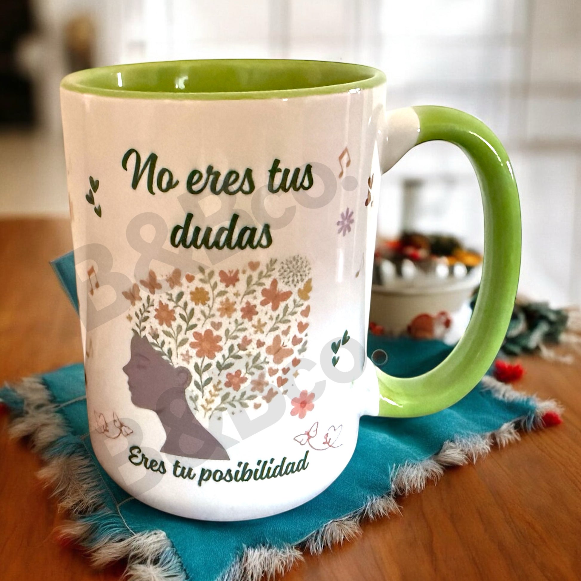 Nuestra taza “No eres tus dudas, eres tu posibilidad” no solo es hermosa, es un recordatorio diario de tu fuerza, tu valor y todo lo que puedes llegar a ser.